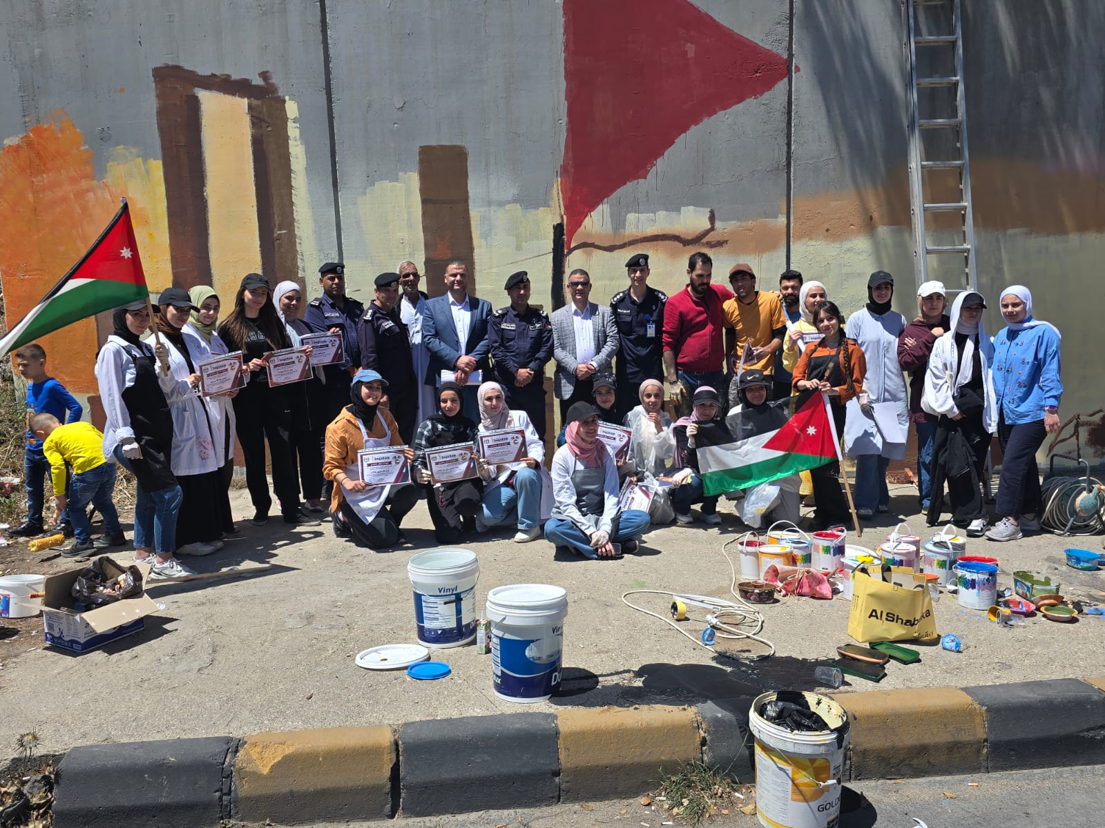 شارك في هذه اللوحة الوطنية طلبة مدارس الرأي وطلبة مدارس كنجستون وطلبة الجامعة الأردنية وأعضاء المجلس المحلي لمركز أمن الرشيد ونخبة من الشرطة المجتمعية ..