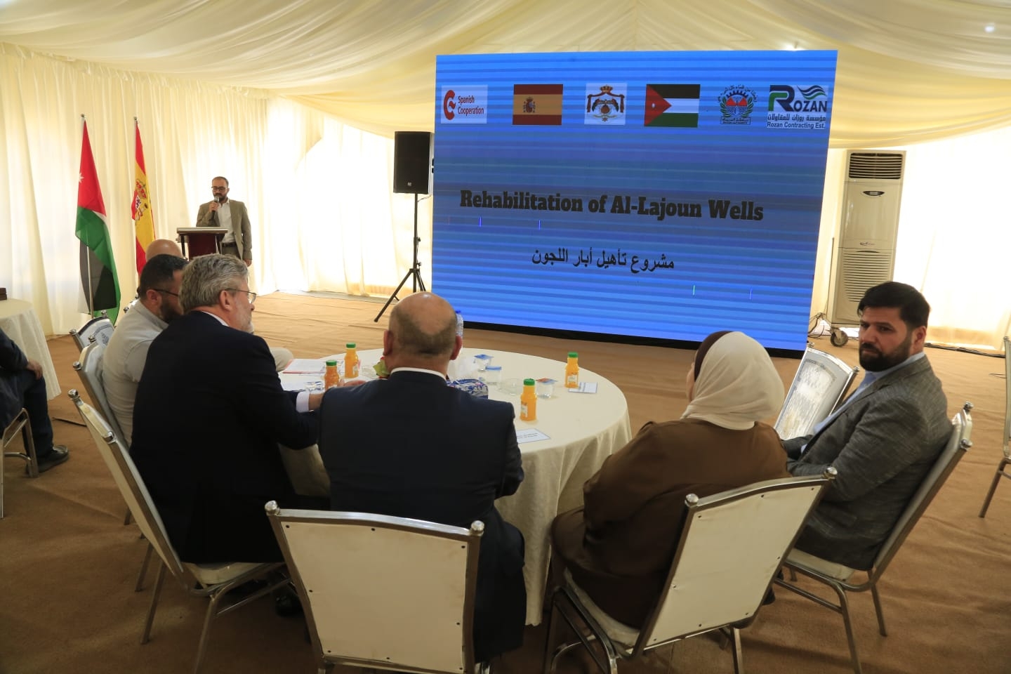 افتتح أمين عام سلطة المياه المهندس سفيان البطاينة وسفير مملكة اسبانيا في الاردن السيد ميغيل دي لوكاس اليوم الاحد ١١/٥/٢٠٢٥ مشروع إعادة تأهيل ابار اللجون بهدف زيادة كفائتها وتحسين التزويد المائي وتقليل الفاقد المائي في محافظة الكرك بحضور رئيسة الوكالة الاسبانية للتعاون الدولي للتنمية السيدة كريستينا جوتيريس وعدد من المعنيين و موظفي قطاع المياه والمجتمع المحلي