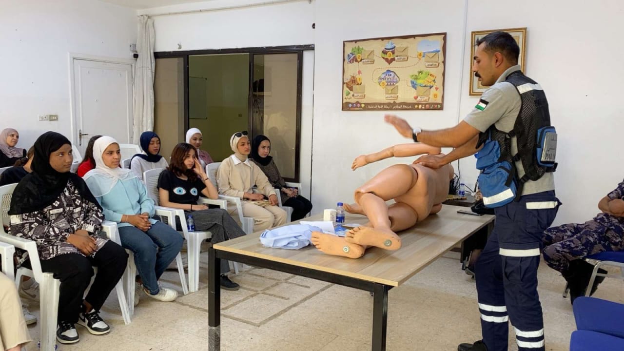 وقدّم المحاضرة العريف مصلح الزعبي من كوادر مركز الدفاع المدني- المدينة، حيث استعرض خلالها أبرز الإجراءات الأساسية للإسعاف الأولي، وطرق التعامل مع حالات الحروق، والجروح، والكسور، إضافة إلى الإغماء والاختناق.