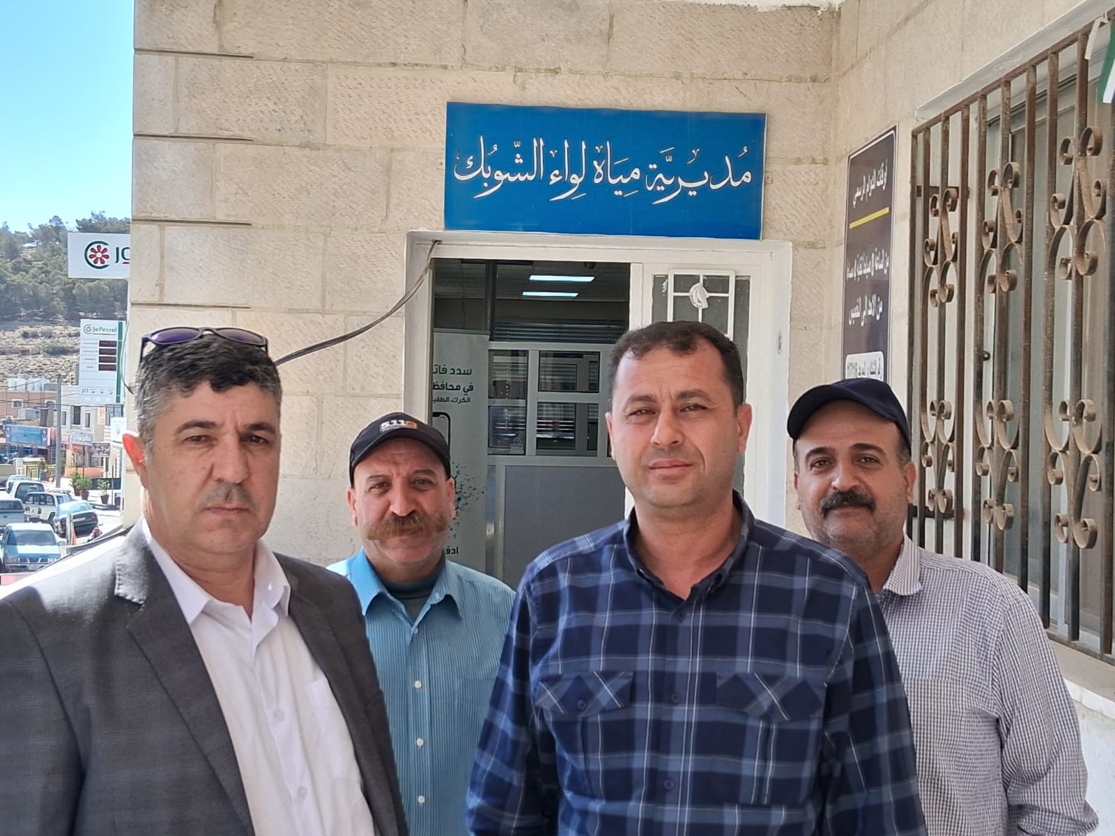 وذالك للإطلاع على واقع التزويد المائي للمواطنين ومتابعة الشكاوى بشكل مستمر وخاصة منطقة الجبارات في لواء الشوبك