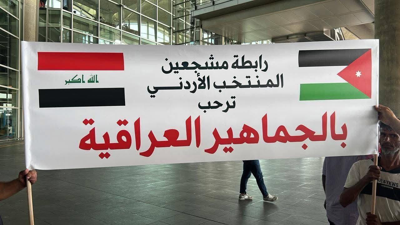 يتواجد الفريق العراقي في عمّان لمواجهة المنتخب الأردني، "النشامى"، في مباراة يُتوقع أن تكون مرتقبة للغاية ضمن الجولة الأخيرة من تصفيات كأس العالم. لوّح المشجعون بالأعلام وهتفوا، مما خلق أجواءً حماسية لفريقهم المحبوب.
