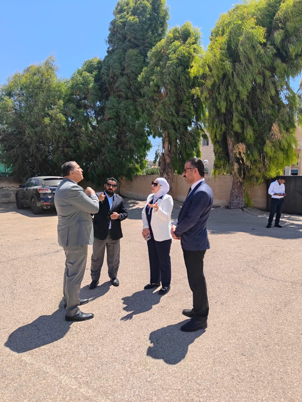 رافق عطوفتها في جولتها اليوم مدير تربية لواء الجامعة السيد عبدالحكيم الشوابكة، ومدير مديرية الأملاك والاستثمار في إدارة الأبنية والمشاريع الدولية خلف الحباشنة، ورئيس قسم الأبنية في مديرية لواء الجامعة المهندس سفيان أبو صافي.