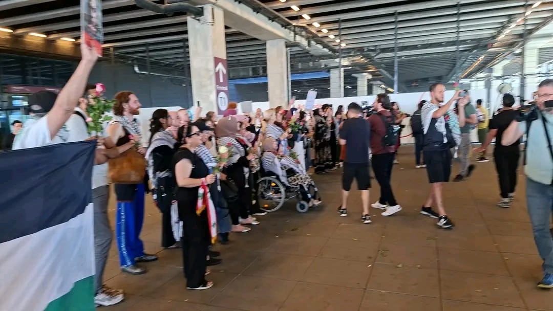 استقبال شعبي حاشد لأبطال سفينة "مادلين" في مطار برلين بعد محاولة كسر حصار غزة (صور)