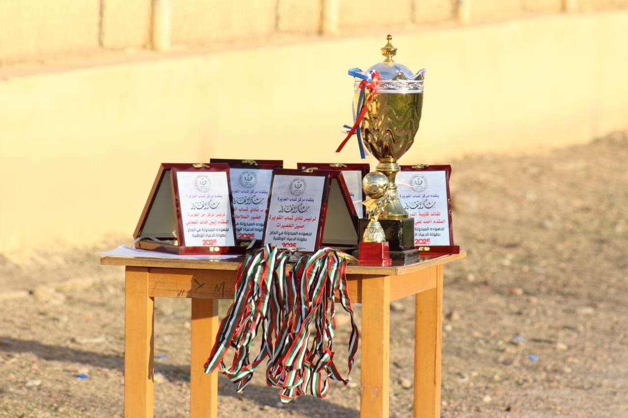 أختتم مركز شباب القويرة فعاليات بطولة الأعياد الوطنية بمشاركة ٥٠ لاعبا ، تحت رعاية رئيس مجلس المحافظة حرب العويضات ،وقد جاءت هذه البطولة لتعزيز الروح الوطنية وغرس القيم الرياضية في نفوس الشباب.
