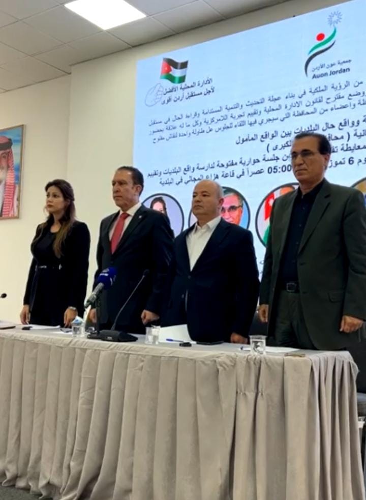 هذا وستعقد عون الأردن لقاءات في كافة المحافظات لمناقشة مقترح لتعديل قانون الإدارة المحلية الحالي وتجربة اللامركزية.