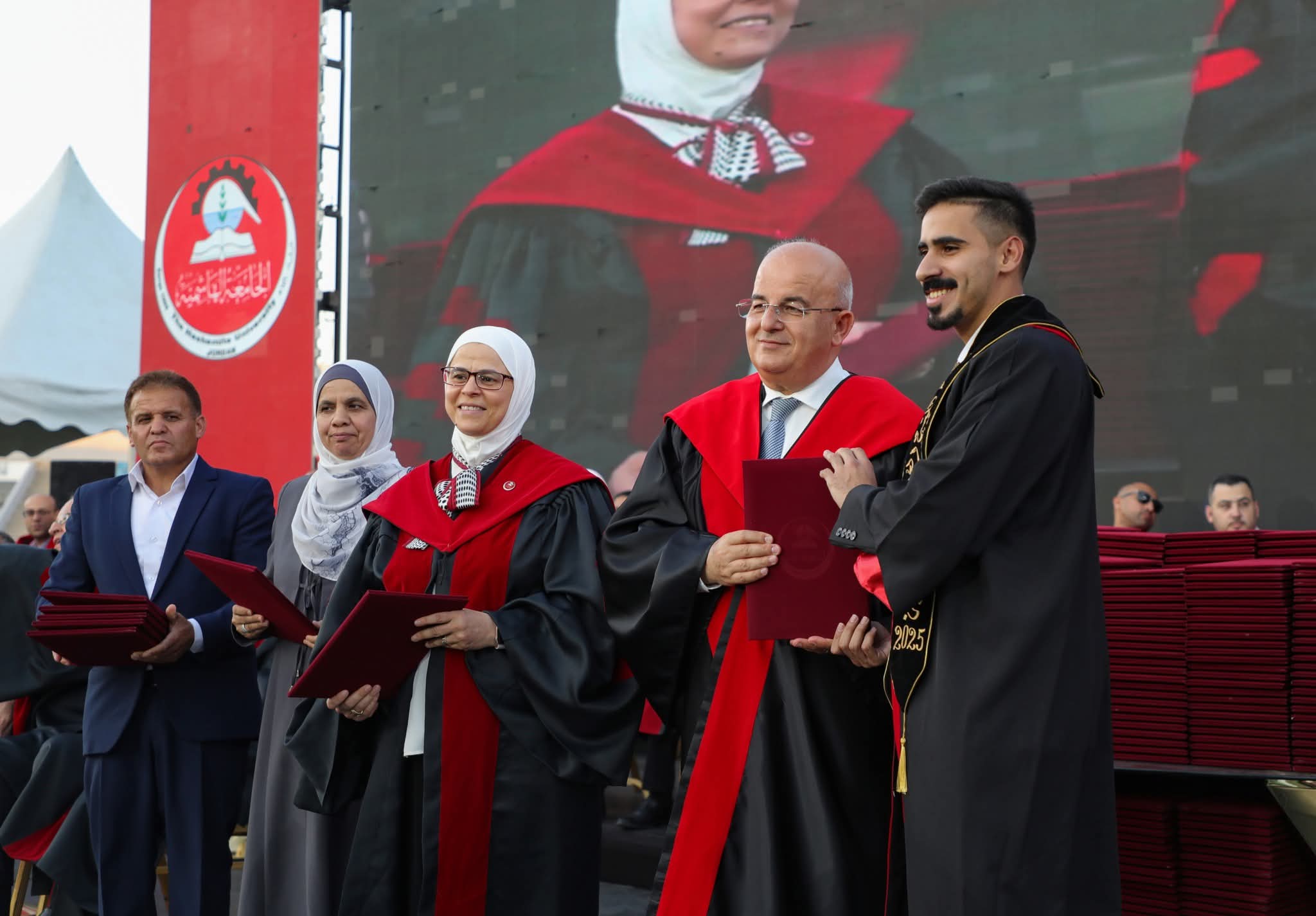 وثمن رئيس الجامعة دور أعضاء الهيئة التدريسية في مختلف كليات الجامعة، مؤكداً أن ما تحقق من إنجاز هو ثمرة جهودهم العلمية والتربوية، واصفا إياهم بالشعلة التي تُستنار بها العقول، وتبنى بها الأمم، وبالقدوة الملهمة، ومشيداً بجهودهم في غرس حب العلم والثقة في نفوس طلبتهم الذين يتوجون اليوم في ساحة الفخر.