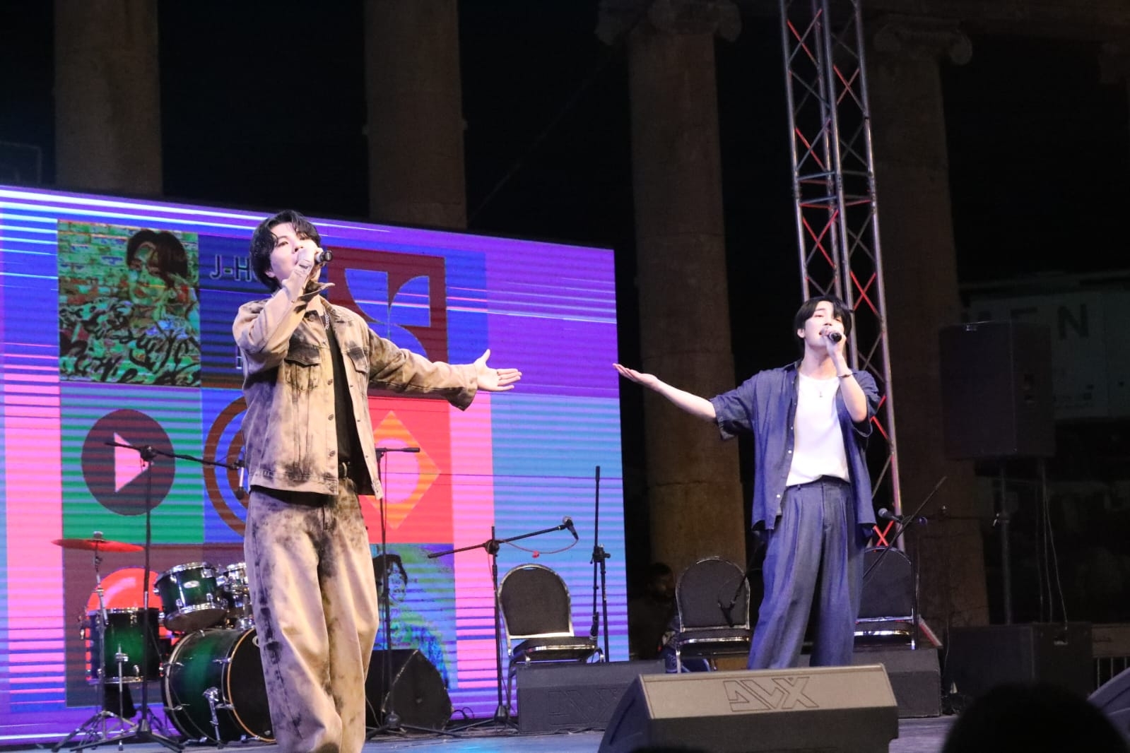 واستكمل الحفل بعرض فني للفنانين الكوريين "kisu " و "jung hoon ”الذي كان جمهور جرش في انتظارهم ليعيشوا تجربة جديدة وفريدة من نوعها مع الفن الكوري الحديث.
