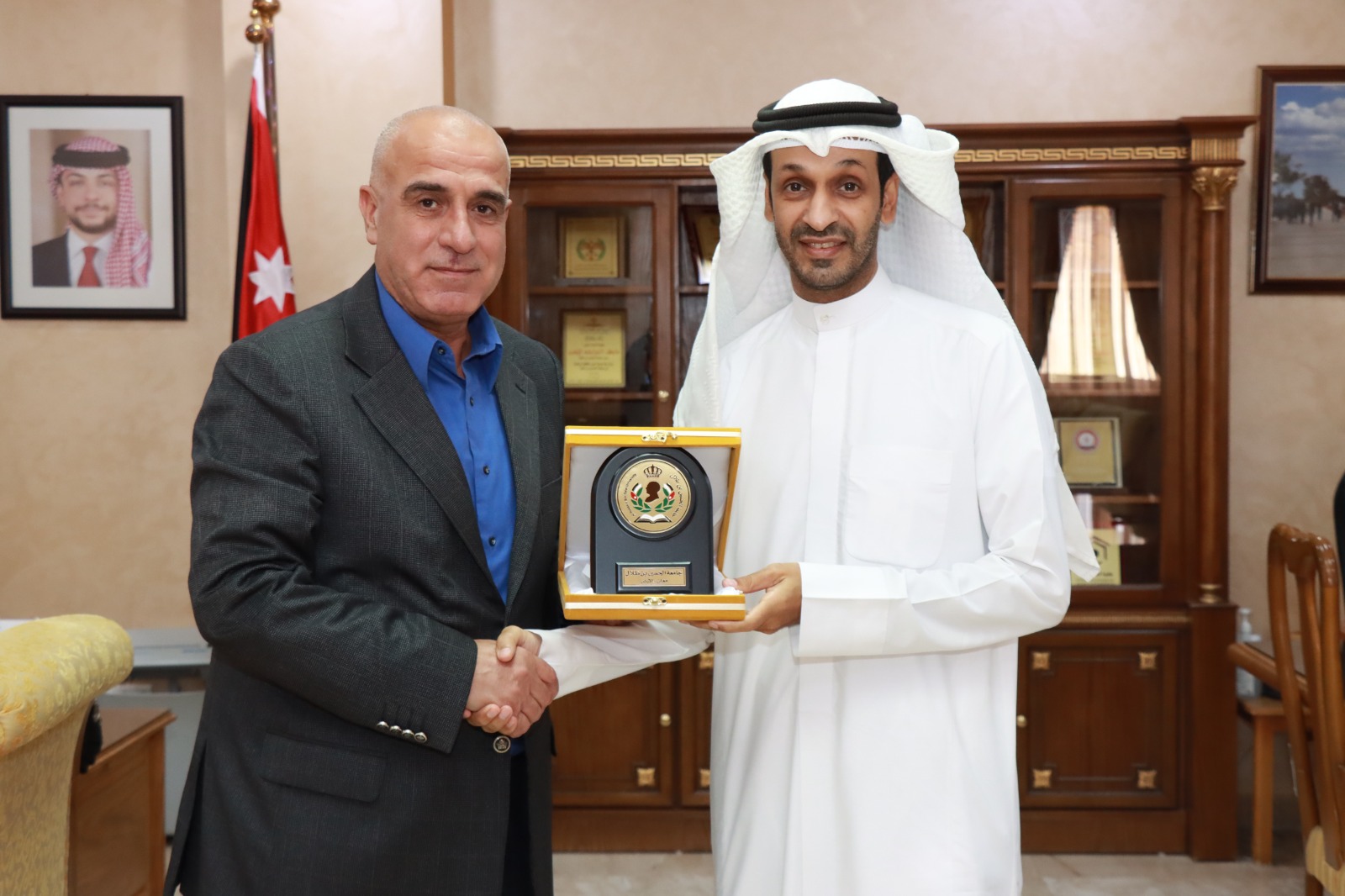 استقبل الأستاذ الدكتور عاطف الخرابشة، رئيس جامعة الحسين بن طلال، في مكتبه اليوم، الدكتور محمد العتيبي، رئيس الجمعية الكويتية للدراسات العليا، والدكتور وهيب كراجة، في زيارة تهدف إلى تعزيز التعاون العلمي والأكاديمي بين الجانبين.