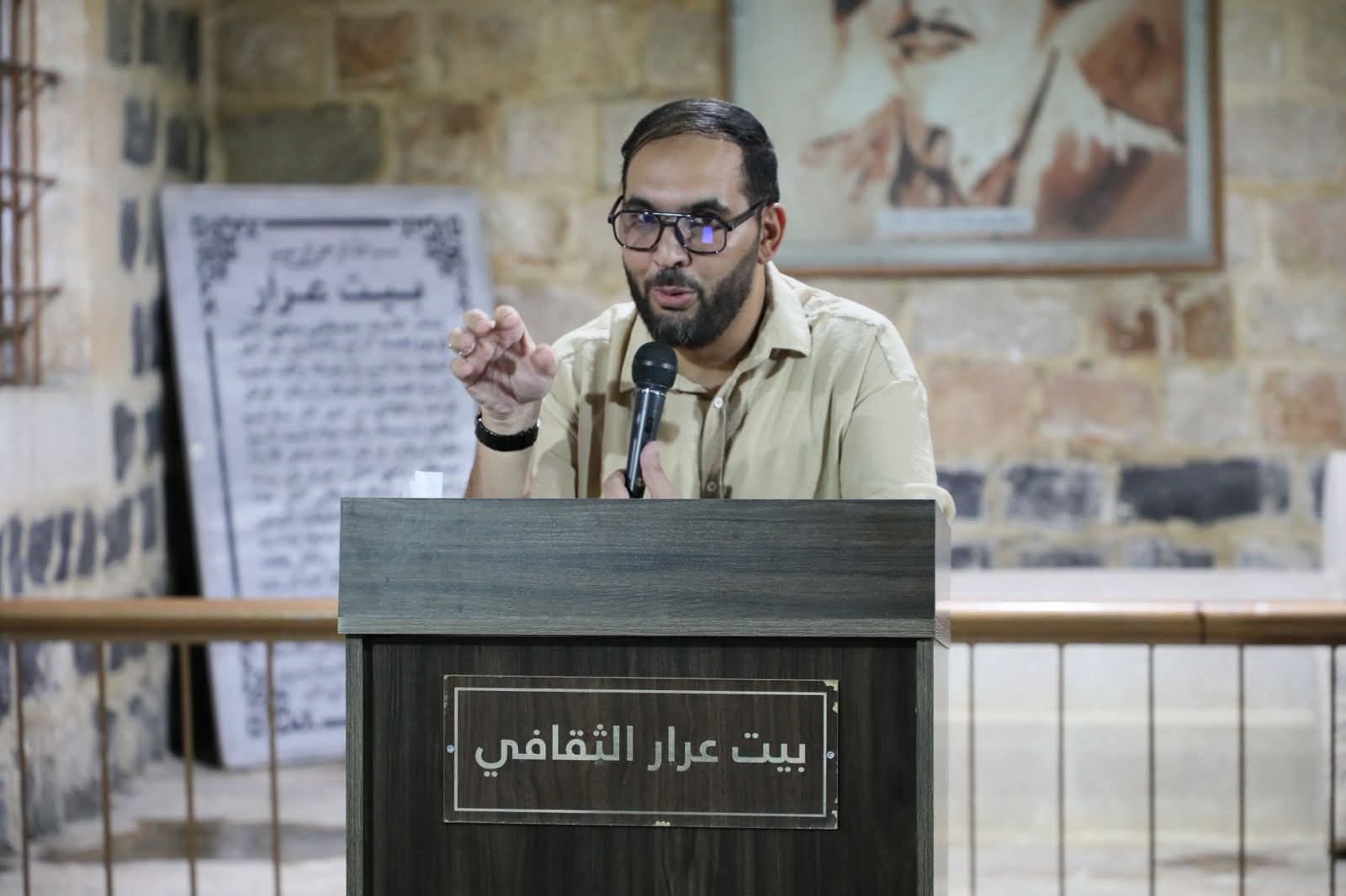 افتتح مساء امس السبت في بيت عرار الثقافي وتحت رعاية الدكتور نضال عياصرة امين عام وزارة الثقافة فعاليات مهرجان القيصر الشعري بمشاركة شعراء اردنيون وعرب . الحفل الذي أدار مفرداته الشاعرة سماح خصاونه بحضور مدير ثقافة اربد الدكتور سلطان الزغول وجمع كبير من المهتمين بالشان الثقافي. واستهلت فعاليات الحفل بكلمة للدكتور نضال العياصرة راعي الحفل قال فيها " كان الشعر ديوان العرب حيث كانت تحلق شجونهم وتتجلى بأبهى الصور الفنية والجمالية. وها نحن في هذا المساء ومن ببت عرار ، بيت شاعر الاردن مصطفى وهبي التل ازجي اجمل التحايا للقائمين على هذا المهرجان. وأضاف العياصرة " إن تكريم المبدعين والاحتفاء بهم مازال نهجا اردنيا اصيلا نقوم به وبمحبة وفخر واعتزاز ، مقتدين بسيدي جلالة الملك عبدالله الثاني ابن الحسين المعظم ، واثمن اختيار شخصية المهرجان للدكتور قاسم ابو عين وزير الثقافة الأسبق، الشاعر الذي كتب وتغنى للوطن " . من جانبه قال رئيس اتحاد القيصر رائد العمري ، يأتي مهرجان القيصر للشعر الفصيح في دورته لهذا العام والذي يحمل اسم الدكتور قاسم ابو عين ، شخصية وطنية أردنية نعتز بها لما كان له دور كبير في الحياة الأردنية منذ كان معلما حتى وصل وزيرا للثقافة . وقرأ كل من الشعراء " حارث الأزدي من العراق ، جبر البعداني من اليمن ، أحمد صانع من الجزائر، محمد الحيفاوي من الأردن، ومحمد طكو من سوريا قصائد عاينوا فيها احوال الذات والاغتراب والحال العربي . وفي نهاية الحفل كرم راعي الحفل الدكتور نضال العياصرة ورئيس اتحاد القيصر رائد العمري ومدير ثقافة اربد الدكتور سلطان الزغول الدكتور صلاح أبو عين نجل الدكتور قاسم ابو عين المحتفى به ، والشعراء المشاركين . وقدم العمري درع المهرجان لراعي الحفل ودرعا لمدير ثقافة اربد.