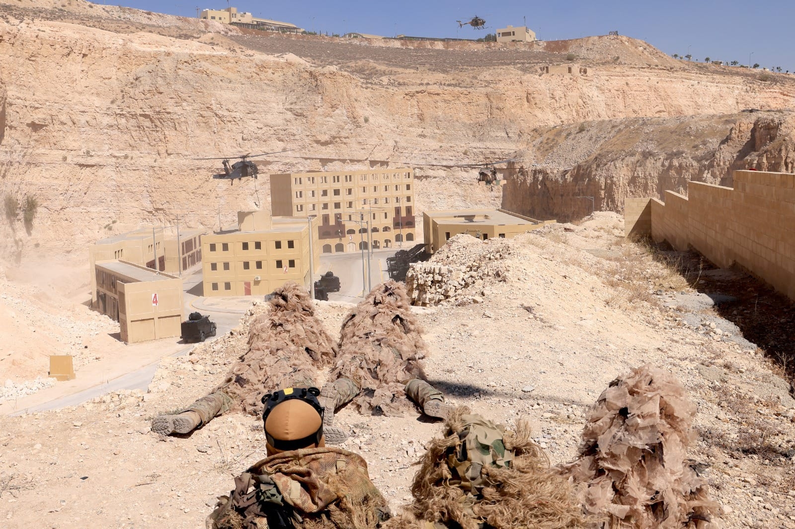 وفي سياق متصل، تابع اللواء الركن الحنيطي مع الوفد الضيف تمريناً عسكرياً ميدانياً في مركز الملك عبدالله الثاني لتدريب العمليات الخاصة (KASOTC)، و استمعوا إلى إيجاز عن التمرين الذي نفذته قوات الملك عبدالله الثاني الخاصة الملكية، والذي اشتمل على عمليات القتال في المناطق المبنية بمشاركة طائرات عامودية من سلاح الجو الملكي، أظهر المشاركون خلاله حرفية كبيرة في التعامل مع مختلف السيناريوهات الميدانية.