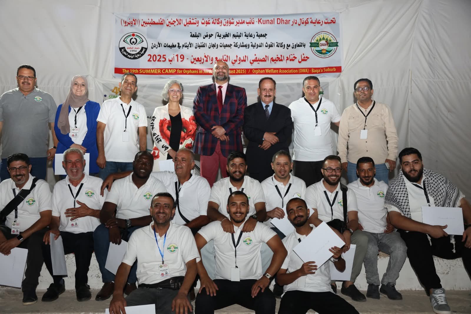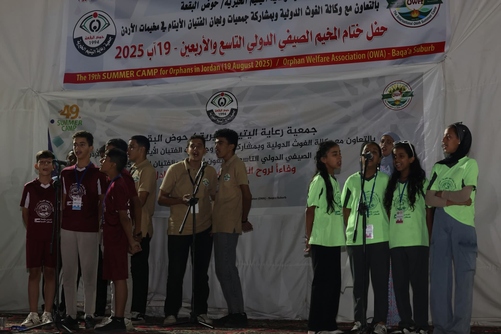 اختتمت فعاليات المخيم الصيفي الدولي التاسع والاربعون للفتيات والفتيان الايتام الذي نظمته جمعية رعاية اليتيم الخيرية - حوض البقعة بالتعاون مع وكالة الغوث الدولية تحت رعاية الفاضلة السيدة/ جوليا ديكم / مدير التعليم الاقليمي والسيد/ كونال دار نائب مدير عمليات الاونروا في الاردن .