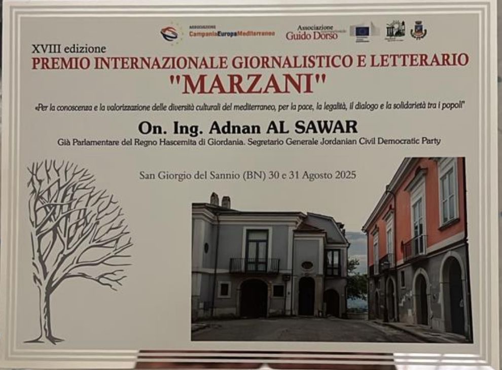 المهندس الأردني عدنان السواعير يحصل على جائزة "مارزاني الدولية للصحافة والأدب" في إيطاليا. (صور)