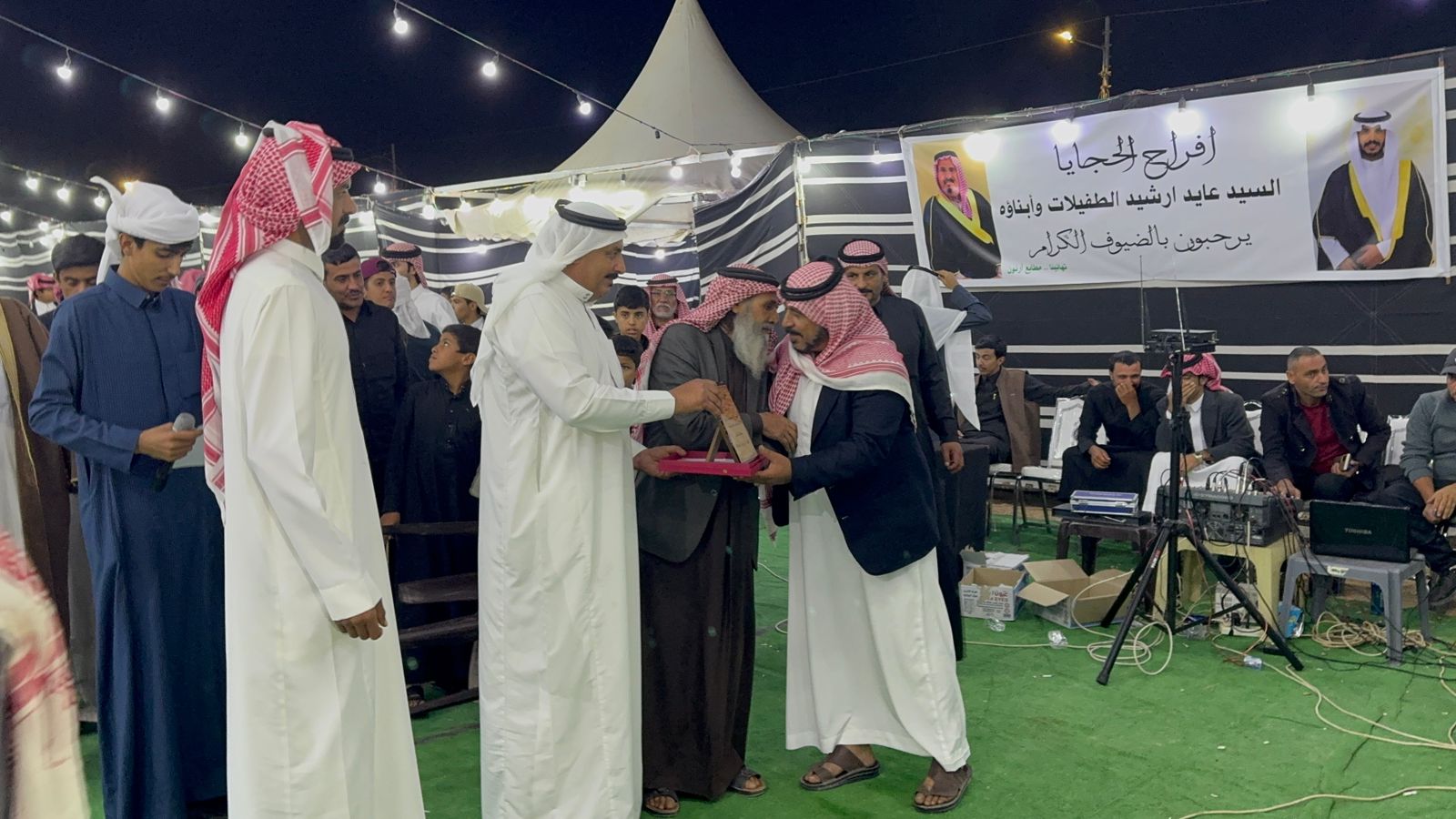 وفي نهاية حفل العرس الذي تميز بحسن التنظيم العرس فقد قام الاخ الأكبر للعريس والشاعر علي الطفيلات الذي بادر بالفكرة بجمع شعراء الوطن بإحياء الموروث الثقافي و نيابة عن والدهم بتكريم الشعراء بدروع تذكار للشعراء كل باسمه .