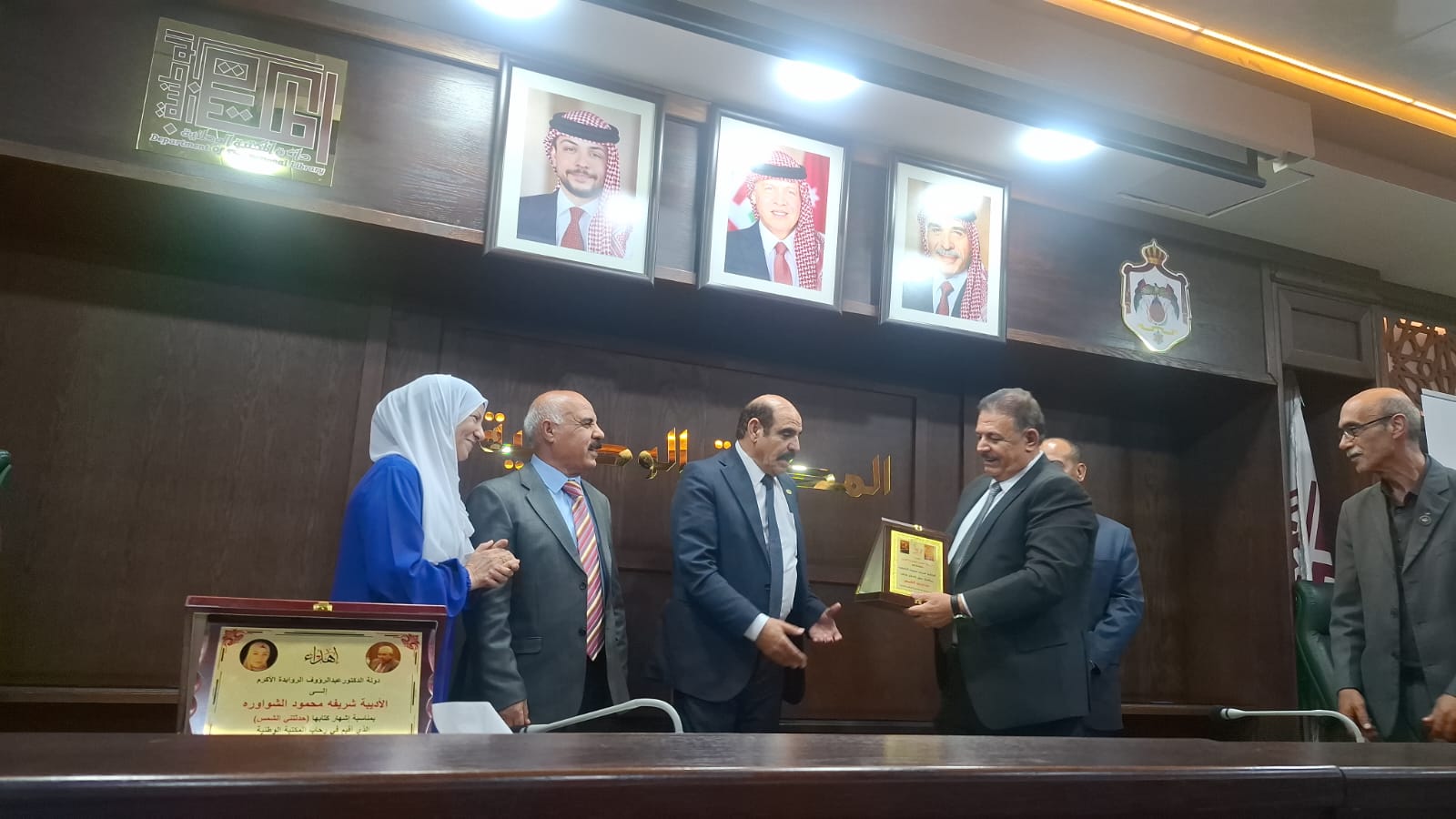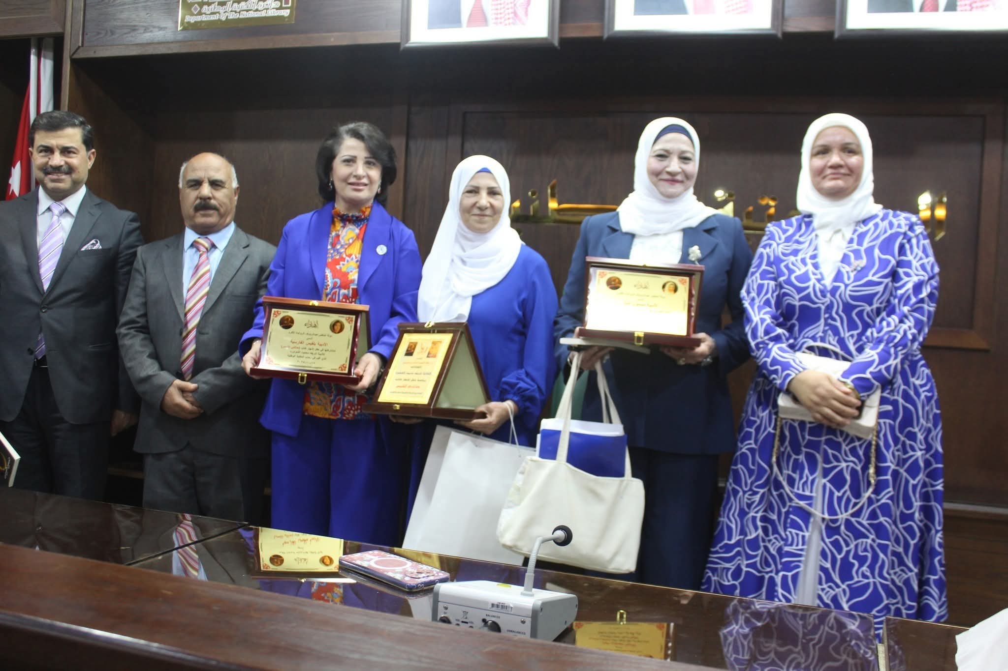 حضر الحفل مدير عام المكتبة الوطنية الدكتور فراس الضرابعة، وعدد من ممثلي المؤسسات الثقافية والاجتماعية والإعلامية. وفي ختام الحفل، تم تكريم راعي الحفل بتقديم العباءة العربية، وتقديم دروع للمشاركين.