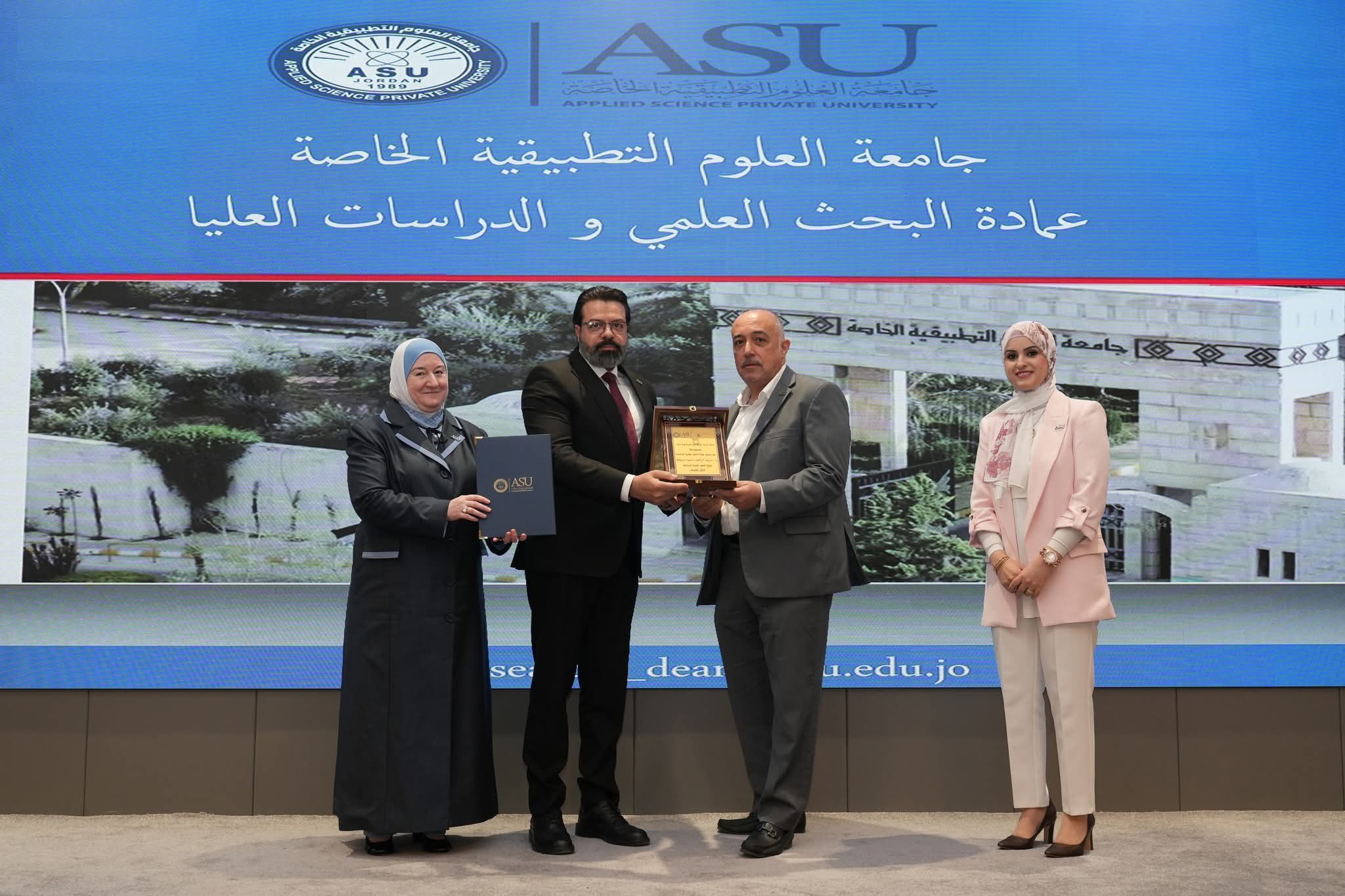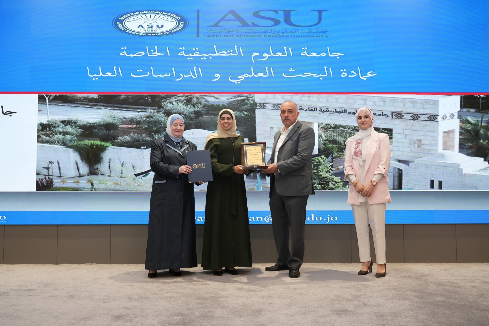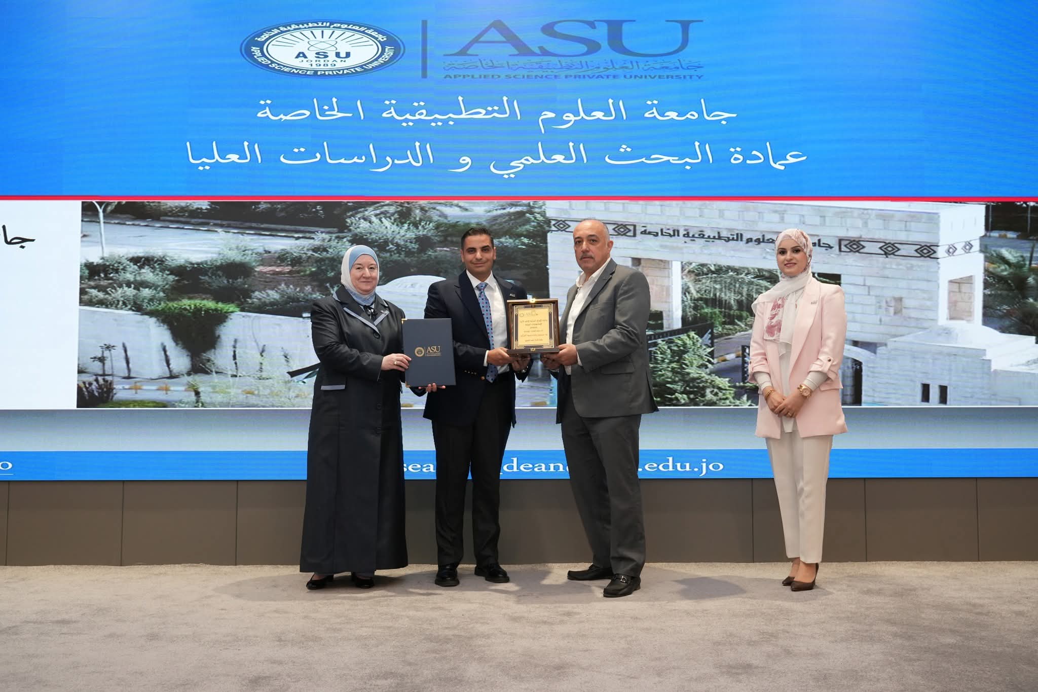 تتقدّم جامعة العلوم التطبيقية الخاصة بأحرّ التهاني والتبريكات إلى الفائزين بجوائز البحث العلمي على مستوى الجامعة والكليات للعام الأكاديمي 2024-2025، تقديرًا لجهودهم المتميزة وإنجازاتهم البحثية التي تُجسّد روح الإبداع والتميّز الأكاديمي في الجامعة، وتُعزّز مسيرتها في دعم البحث العلمي والابتكار.
