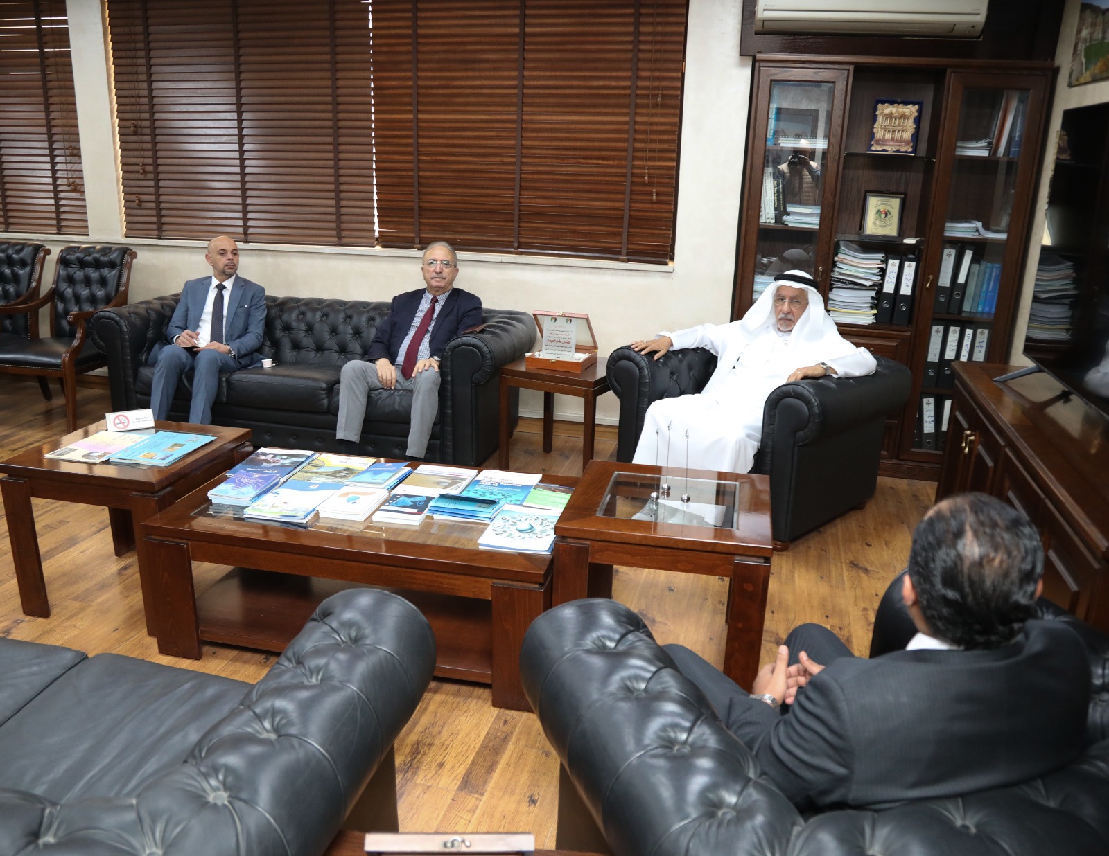 التقى أمين عام سلطة وادي الأردن المهندس هشام الحيصة أمين عام جائزة خليفة الدولية لنخيل التمر والابتكار الزراعي الدكتور عبد الوهاب زايد، بحضور رئيس جمعية التمور الأردنية JODAالمهندس أنور حداد، لبحث سبل تعزيز التعاون في مجال المياه وخدمات الري لقطاع النخيل والتمور الأردنية.