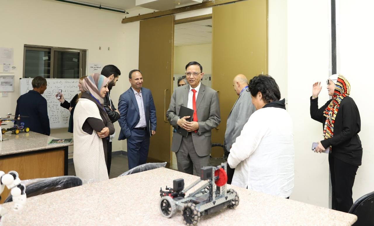 وعقب اللقاء، قام الوفد بجولة شاملة في مرافق الجامعة شملت عددًا من الكليات والمراكز والقاعات التدريسية والمختبرات التقنية، للاطلاع على البيئة التعليمية والتجهيزات الأكاديمية والتقنية التي توفرها الجامعة لطلبتها. وأعرب أعضاء الوفد عن تقديرهم لما تتمتع به جامعة البلقاء التطبيقية من بنية تحتية متقدمة وبرامج تطبيقية رائدة في مجال التعليم التقني.
