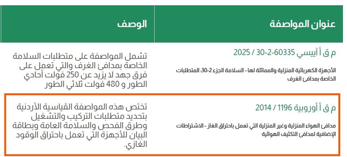 واستند المبيضين إلى المواصفة القياسية المتعلقة بالسلامة العامة للمدافئ الغازية (المستمدة من المواصفة الأوروبية EN 1196)، والتي تحدد شرطين رئيسيين لوضع أسطوانة الغاز بأن تكون الأسطوانة موضوعة بشكل متكامل داخل حجرة أو خزانة ضمن جسم المدفأة نفسها وأن تكون الأسطوانة حرة ومخزنة خارجياً في منطقة محمية، على أن يتم توصيلها للمدفأة عبر تمديدات غاز محكمة التنفيذ.