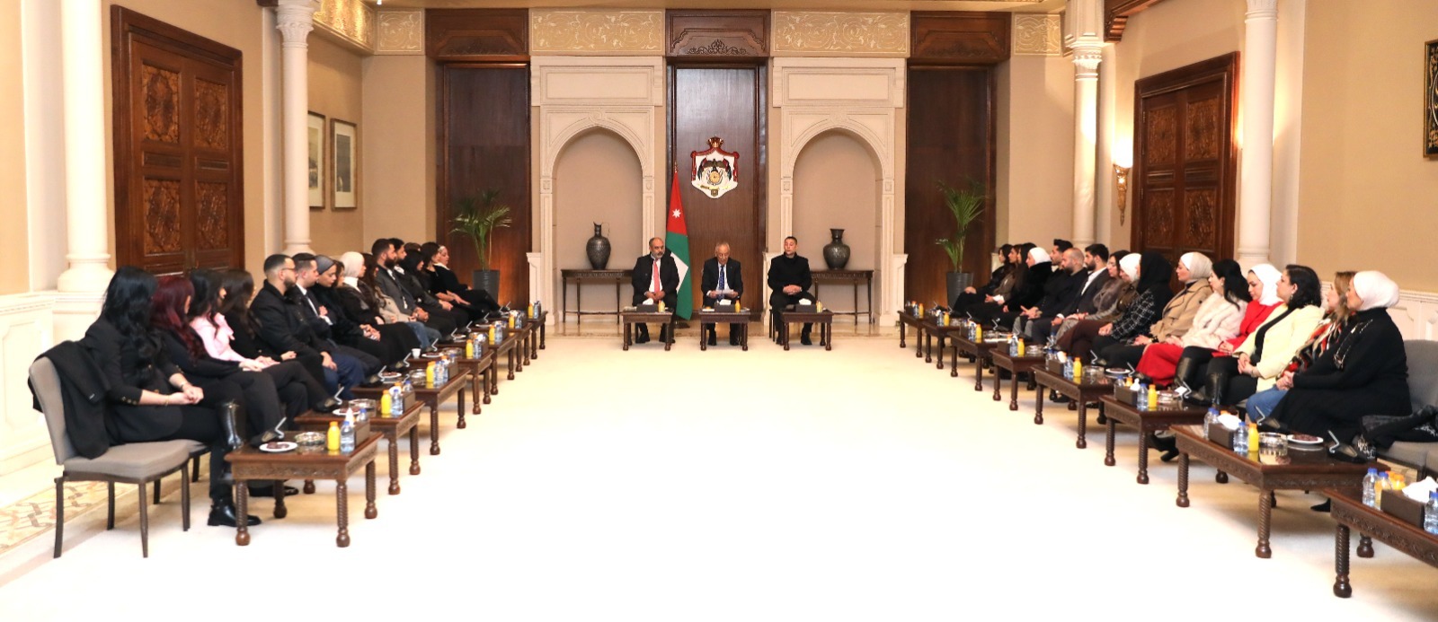 وتناول اللقاءان، اللذان عقدا في الديوان الملكي الهاشمي، دور الشباب والأسرة التربوية في تعزيز الوعي المجتمعي، ونقل الصورة الحقيقية عن الأردن، وما تحقق من إنجازات في مسيرته الوطنية الشاملة.