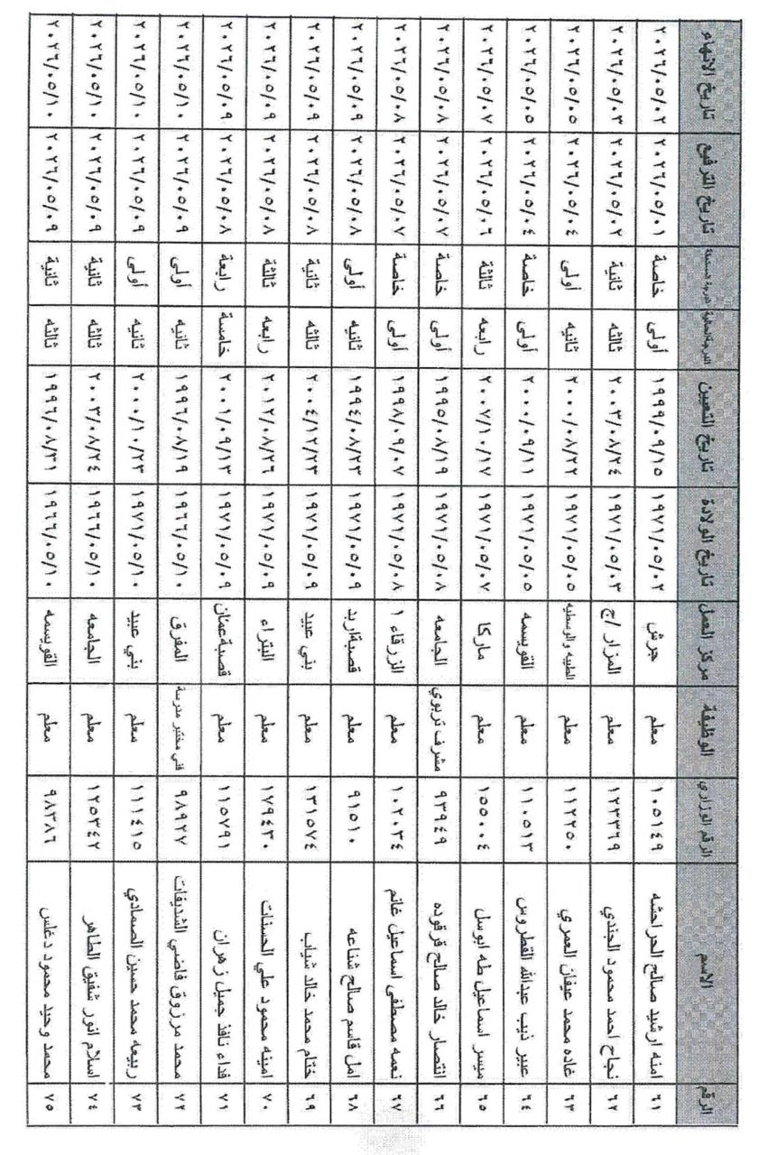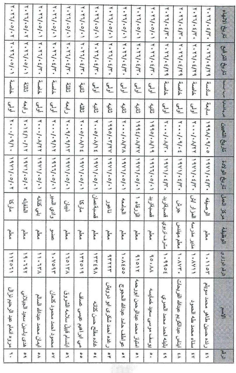 وشمل القرار ترفيع الموظفين من مختلف الفئات الوظيفية (الأولى، الثانية، والثالثة) في مركز الوزارة والميدان التربوي، ممن استكملوا شروط الترفيع والخدمة المقررة قبيل إحالتهم على التقاعد اعتباراً من تاريخه.