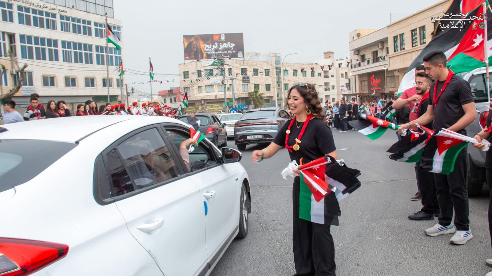 وجاء الاحتفال على دوار شاكر حيث تزين المكان بالأعلام الأردنية، وسط حضور لافت من الأهالي والفعاليات الشبابية في أجواء وطنية عبرت عن الاعتزاز بالراية الأردنية ومعاني الانتماء والولاء