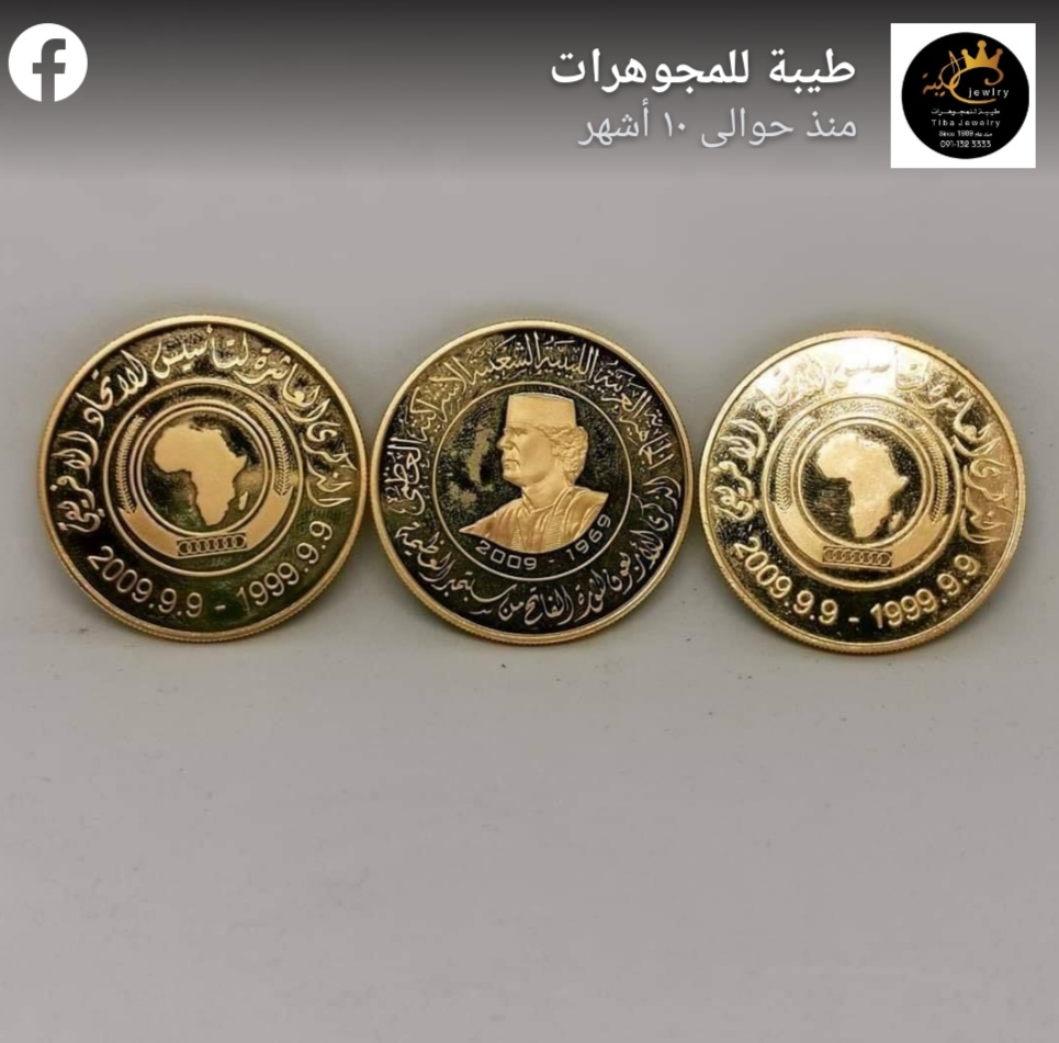 ذكرت بوابة إفريقيا الإخبارية أن عملات ذهبية تحمل صورة القذافي تعرض للبيع في محل مجوهرات في مدينتي طرابلس وسرت.