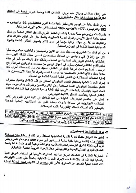 طوقان: 140 مليون دينار كلف مشاريع البرنامج النووي الإجمالية