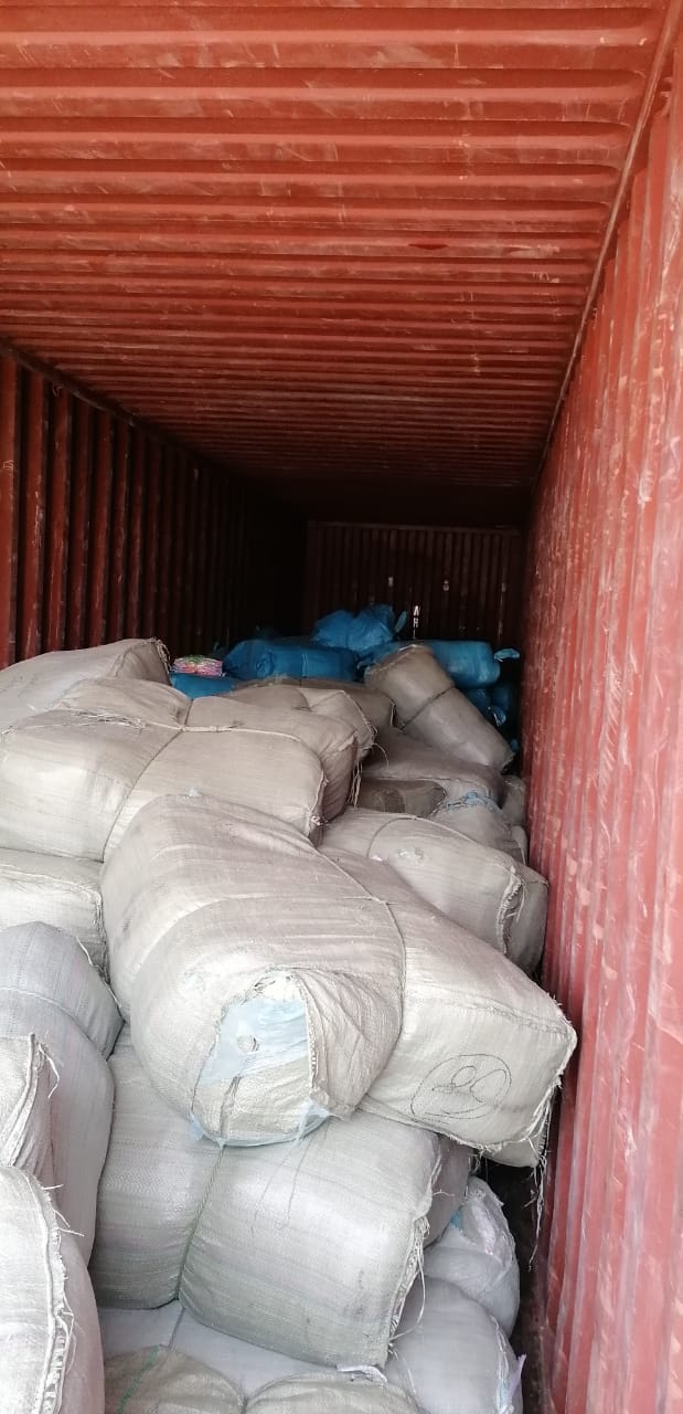 حيث تم الاشتباه في حاوية سعة ٤٠ قدم ، قادمة من إحدى المحافظات وبتفتيشها عثر بداخلها على كمية كبيرة جداً من الألبسة المهربة ضمن (١١٦) طرد وبواقع (٢٧٦٩٦) قطعة ألبسة مختلفة .