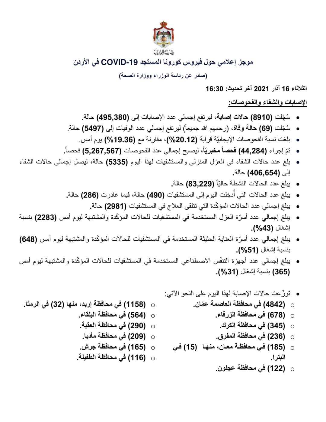 (صادر عن رئاسة الوزراء ووزارة الصحة)