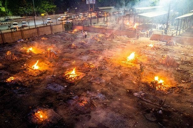 وأفادت الأنباء أن الجثث تُحرق في الحدائق العامة بينما تنتظر العائلات ما يصل إلى 20 ساعة لتكريم موتاهم بينما تصارع الهند أزمة "كورونا" المدمرة.