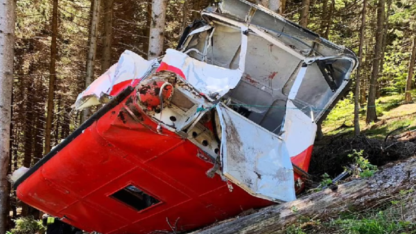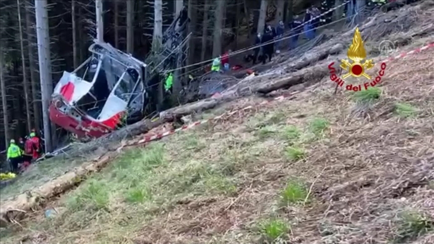 شاهد بالفيديو:سقوط تلفريك سياحي من علو مرتفع شمال إيطاليا بأحد مرتفعات جبال الألب ووفاة جميع من فيه والبالغ عددهم 14 شخص بينهم أطفال بعد حدوث خلل أدى لانقطاع أحد الحبال الفولاذية الممسكة بالكبينة.