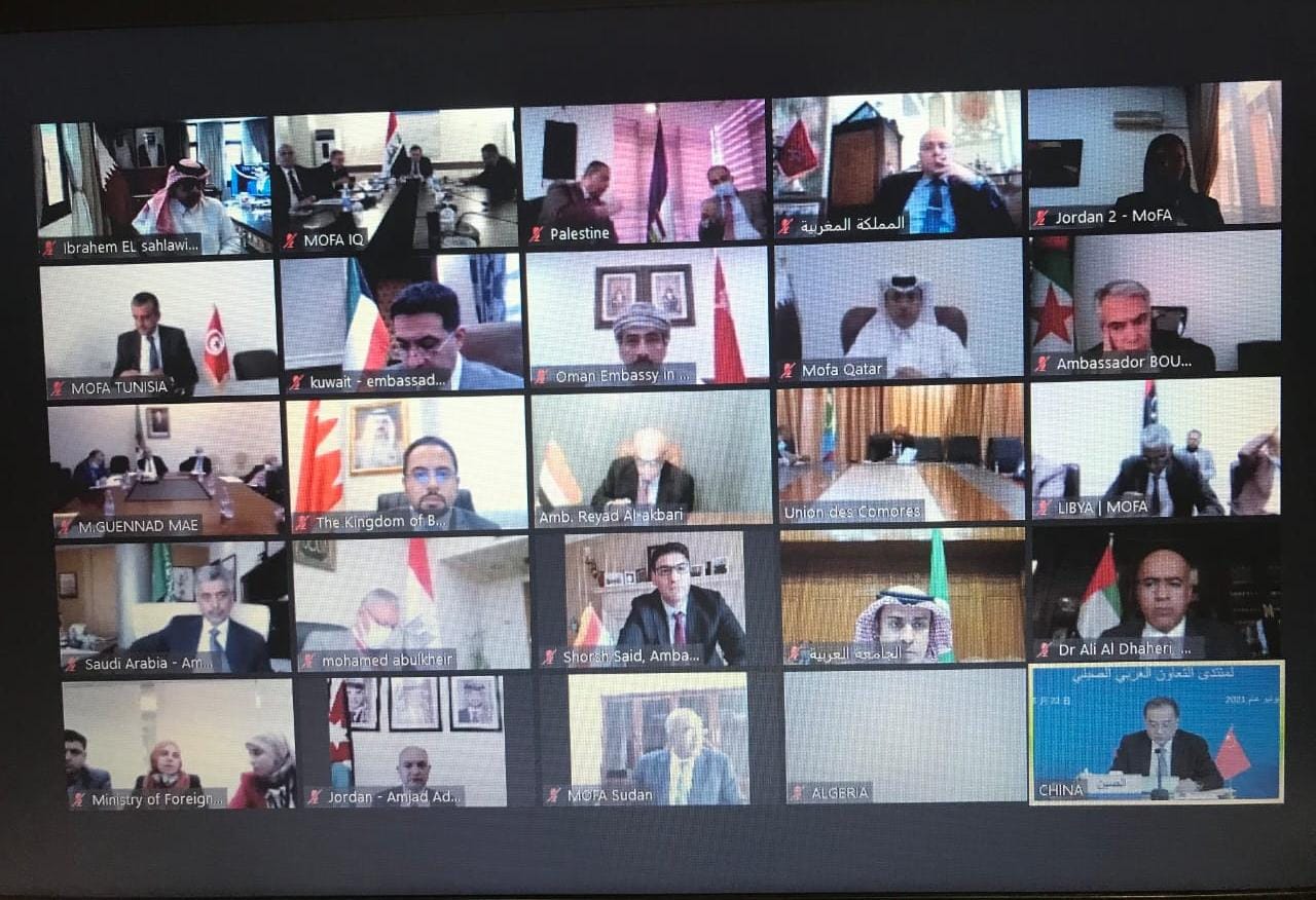 وأعرب، خلال الاجتماع الذي انعقد اليوم الثلاثاء تحت مظلة الأمانة العامة لجامعة الدول العربية وبتقنية الاتصال المرئي، عن التطلّع إلى تعميق وزيادة التعاون مع الصين خدمةً للمصالح المشتركة ولجهود حل أزمات المنطقة، وفي مقدمتها إيجاد أفق حقيقي لتحقيق السلام العادل والشامل الذي تقبل به الشعوب، والذي لن يتحقق ما بقي الاحتلال، وما لم تتجسد الدولة الفلسطينية الحرة المستقلة وعاصمتها القدس المحتلة على خطوط الرابع من حزيران ١٩٦٧ وفق حل الدولتين.