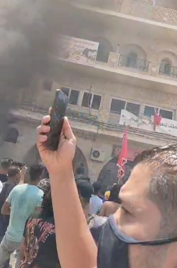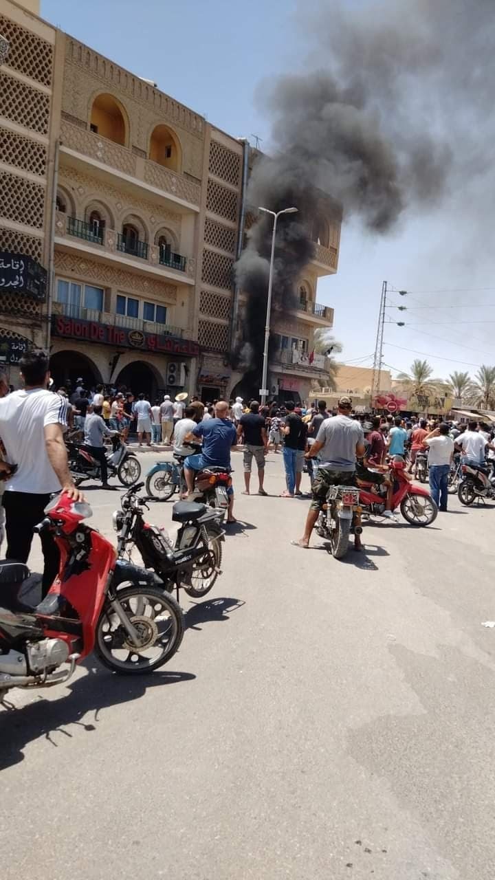 وفى مشهد آخر، يعكس زيادة الغضب والاحتقان تجاه حركة لنهضة، اقتحم متظاهرون فى محافظة توزر جنوب البلاد، مقر حركة النهضة وأحرقوه كما أتلفوا محتوياته، كذلك فى محافظة سيدى بوزيد، الواقعة وسط البلاد، أسقط محتجون غاضبون لافتة حركة النهضة وأشعلوا النار فيها، وكتبوا مكان اللافتة "تسقط حركة النهضة" و"تونس حرة حرة".