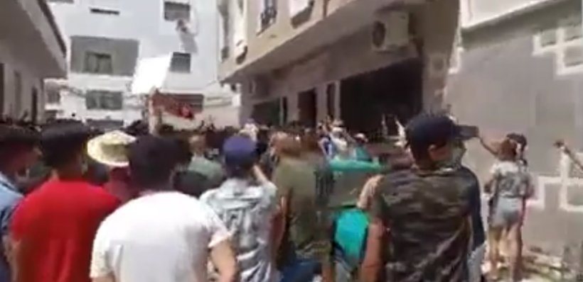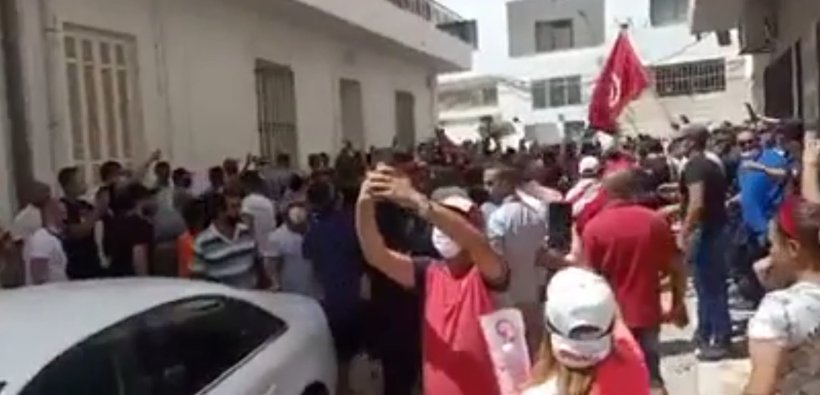 وتجمهر المتظاهرون أمام مقر حركة النهضة فى تونس، وقاموا بمحاصرته، للتعبير عن غضبهم من سياسة الحركة وأدائها فى إدارة شؤون البلاد، ورفعوا شعارات تطالب بخروجها من الحكم من بينها "ارحلوا سئمنا منكم"، وأخرى مناهضة لزعيمها راشد الغوشى، حيث هتفوا "يا غنوشى يا سفاح يا قتال الأرواح"، و"الشعب يريد إسقاط النظام"، كما انتزع أحد المتظاهرين اللافتة الخاصة بالحزب وأسقطها على الأرض، وسط تصفيق حار وفرحة عارمة من الحاضرين، وذلك حسب ما نشره موقع "العربية الحدث".