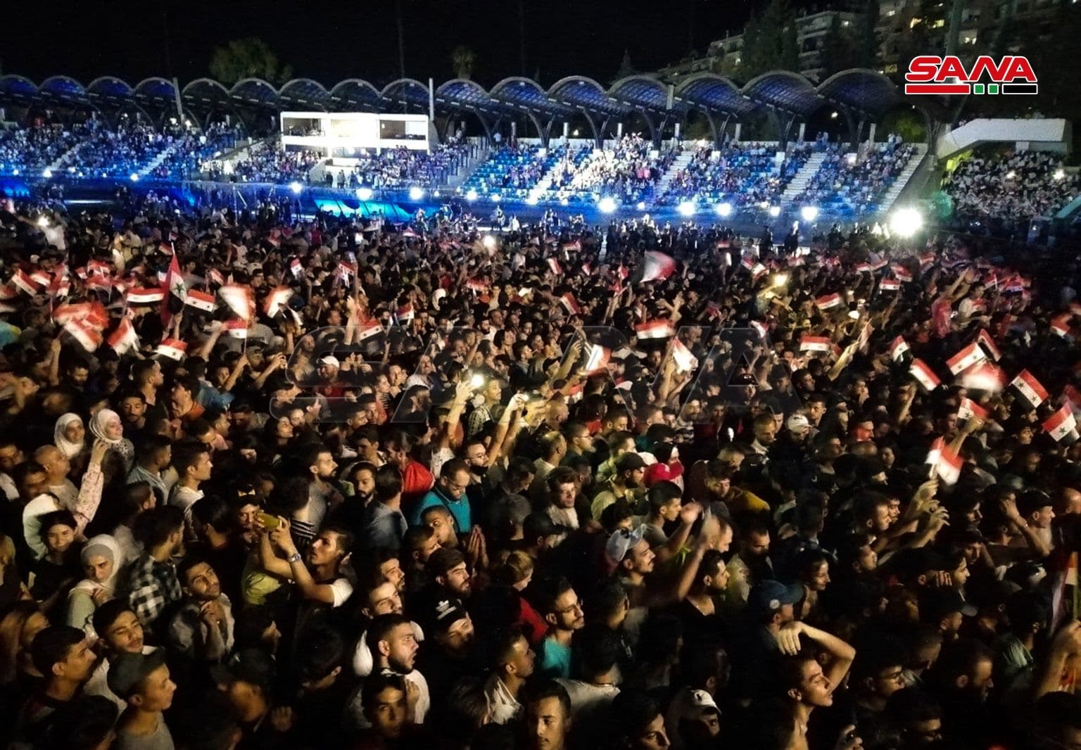 شهد ملعب الجلاء في العاصمة السورية دمشق، ليل السبت، احتفالا ضخما شارك فيه آلاف السوريين، لمناسبة أداء القسم الدستوري وعيد الجيش السوري.
