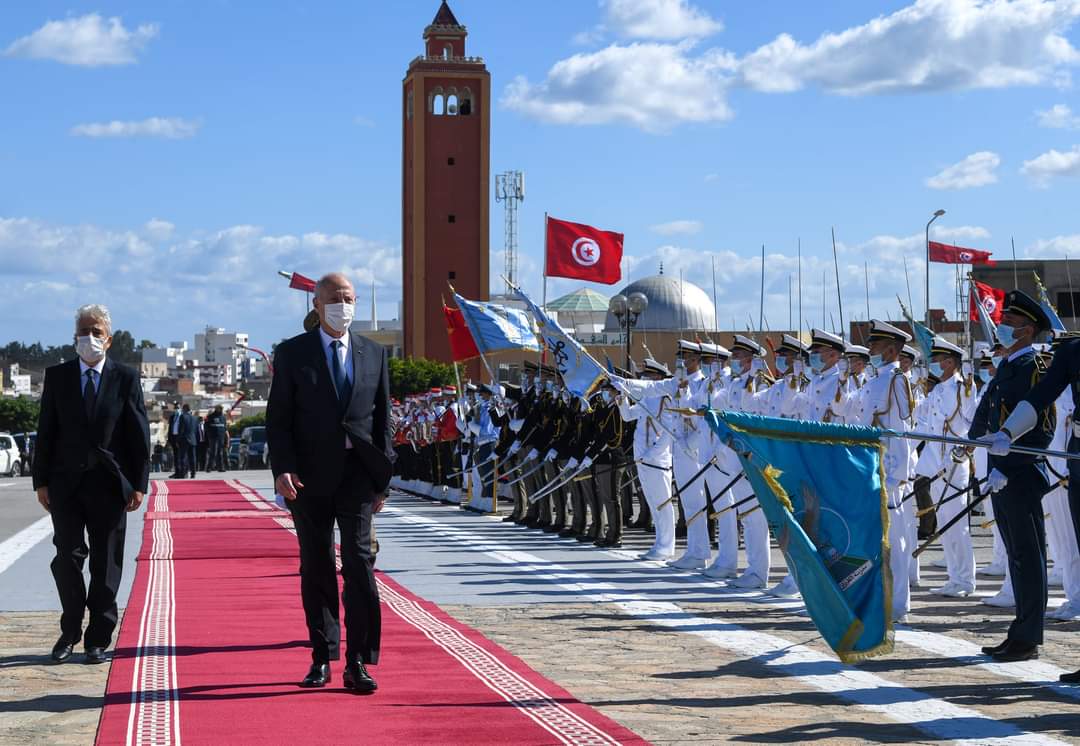 أشرف رئيس الجمهورية التونسية " قيس سعيد، صباح اليوم الجمعة 15 أكتوبر 2021 بروضة الشهداء بمدينة بنزرت، على موكب إحياء الذكرى 58 لعيد الجلاء.
