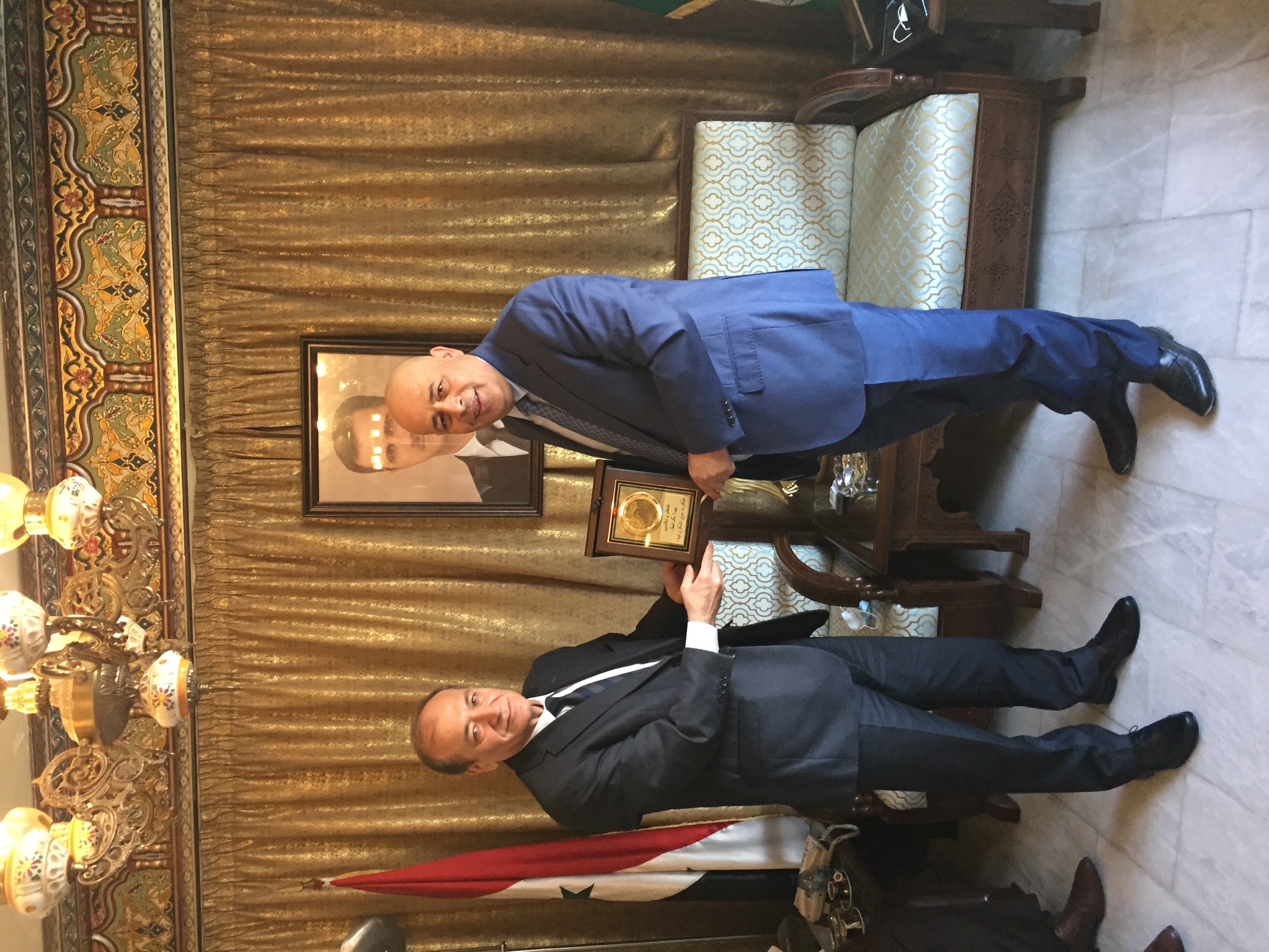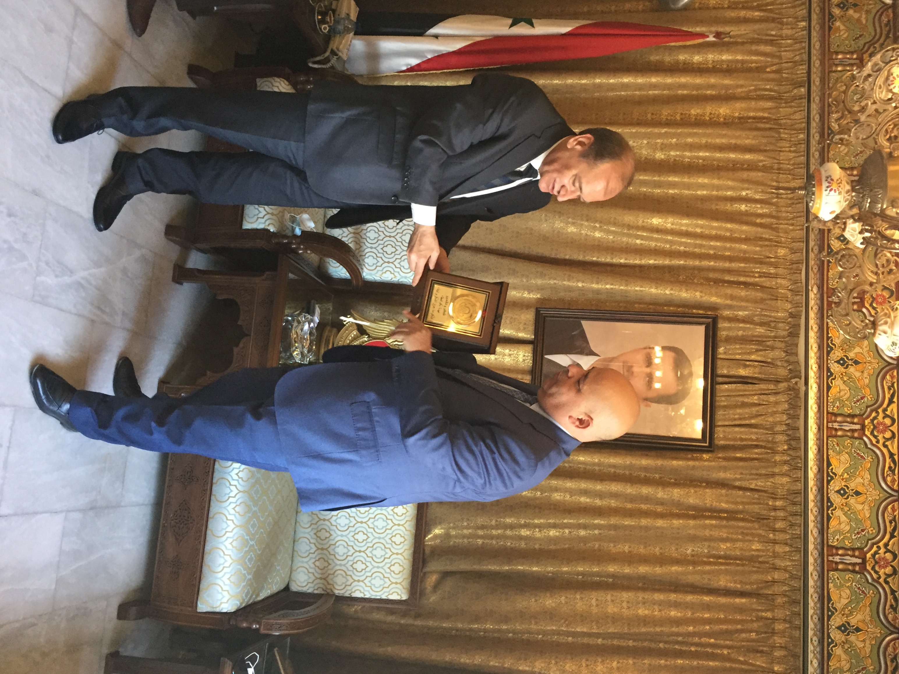 وفي نهاية اللقاء قدم اليعقوب درعا تذكارياً لسعادة القائم بالاعمال مشيداً بسياسته الحكيمة ودبلوماسيته الرفيعة وعمله الدؤوب لخدمة مصالح الشعبين الشقيقين السوري والاردني .