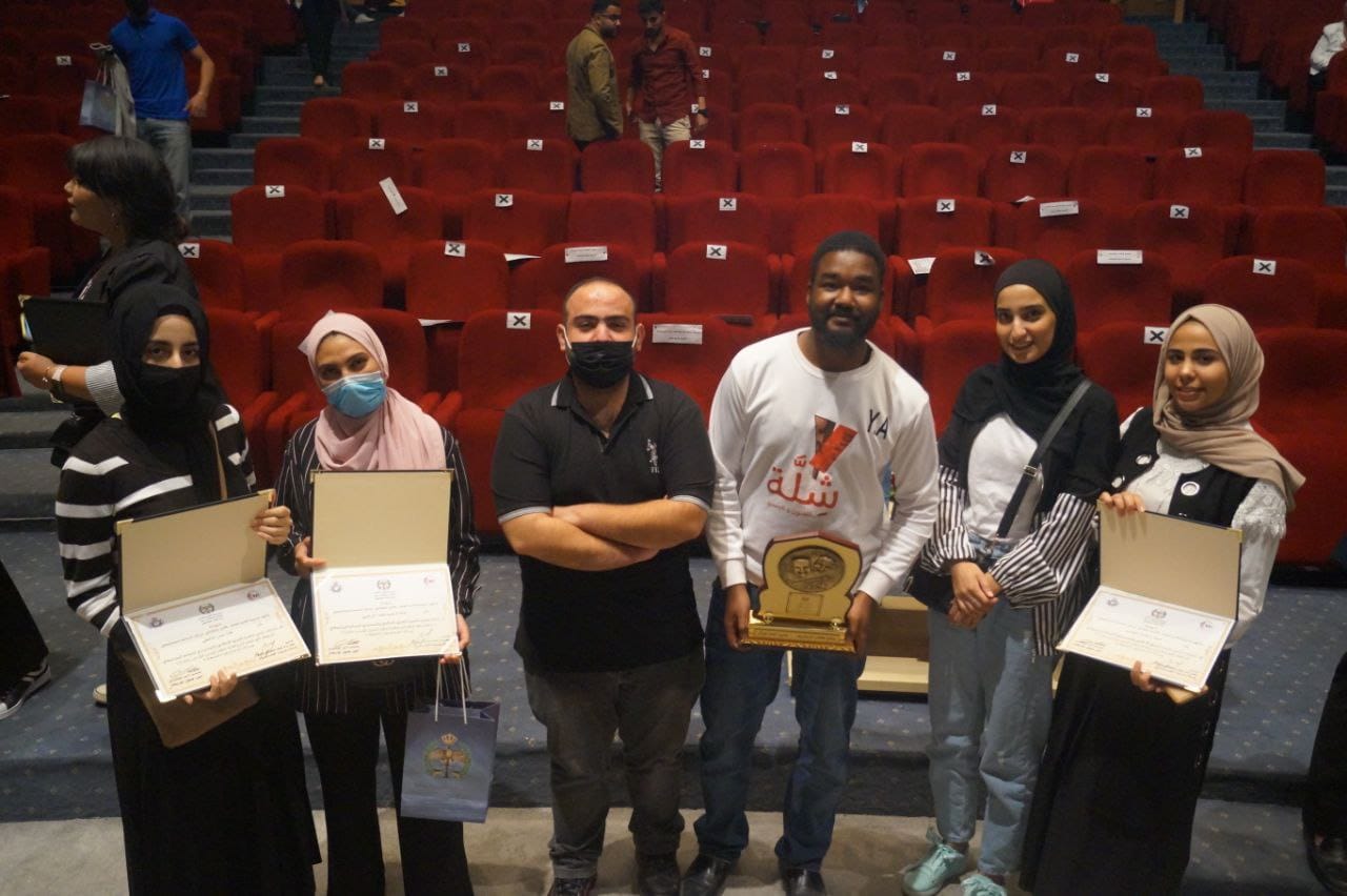 وقد فاز الطالب/ الخريج يحيي عياش مؤسس (فريق شلة المسرحي في عمادة شؤون الطلبة) بالمركز الأول كأفضل كاتب سيناريو.
