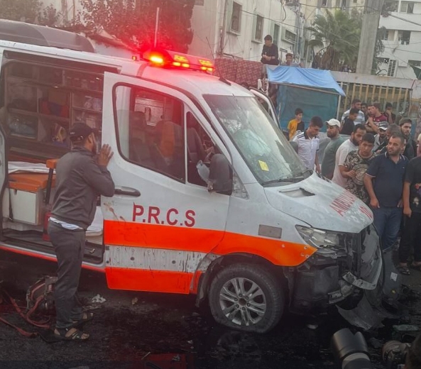 طيران الاحتلال يقصف سيارة إسعاف كانت تقل جرحى أمام مستشفى الشفاء بغزة