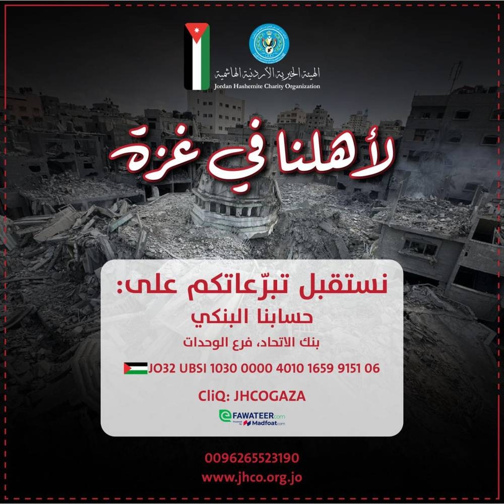 الداخلية والخيرية الهاشمية تطلقان حملة لجمع التبرعات لغزة