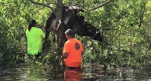 بقرة تعلق في أعلى شجرة بعد إعصار مدمر... فيديو