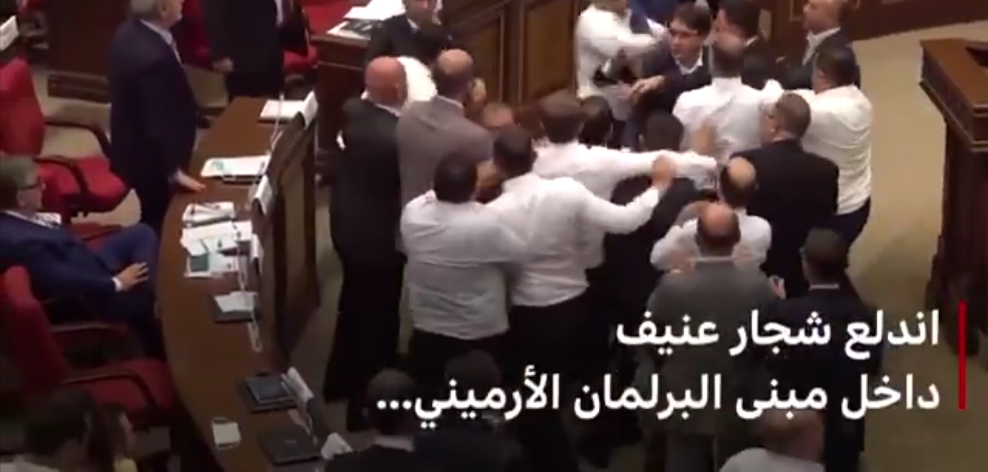 شاهد بالفيديو... اندلع شجار جماعي داخل مبنى البرلمان الأرميني للمرة الثالثة خلال يومين. يقال إن المشاجرة التي وقعت يوم الأربعاء بدأت بعد أن تعرض زعيم المعارضة فاهي هاكوبيان للمضايقة لأنه وصف رئيس الوزراء نيكول باشينيان بأنه "شعبوي كاذب"
