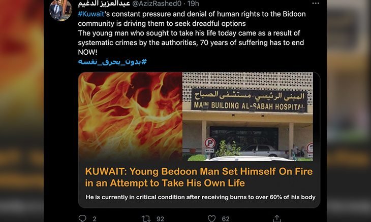 الكويت.. تعاطف كبير مع "بدون" حاول الانتحار حرقا