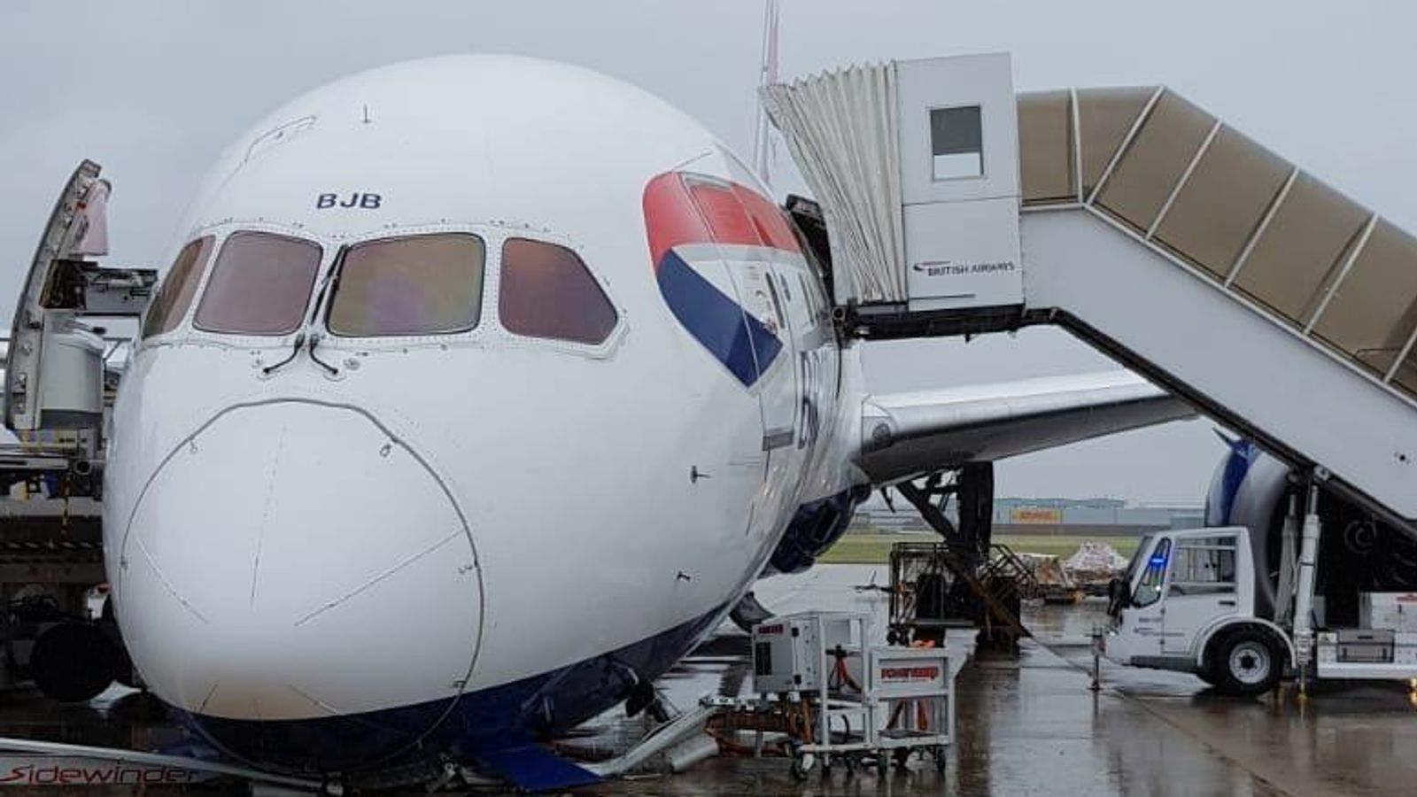مقدمة طائرة بريطانية ترتطم بالأرض في هيثرو (فيديو)