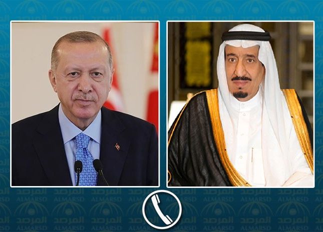خادم الحرمين الشريفين يتلقى اتصالاً هاتفياً من الرئيس التركي حيث تم بحث العلاقات الثنائية بين البلدين.