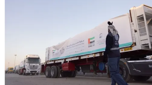 387 طنًا من الغذاء تدخل غزة ضمن عملية الفارس الشهم 3" الإماراتية