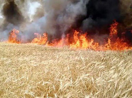 سوريا : احتراق حقول القمح في عدة قرى بمحيط رأس العين جراء نشوب حريق بالقرب من نقطة للاحتلال التركي
