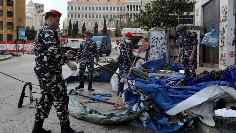 الأمن اللبناني يزيل مخيما للمعتصمين وسط بيروت