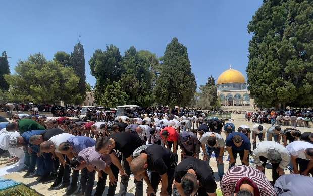 الآلاف يؤدون صلاة الجمعة في الأقصى والاحتلال يعتدي على المصلين