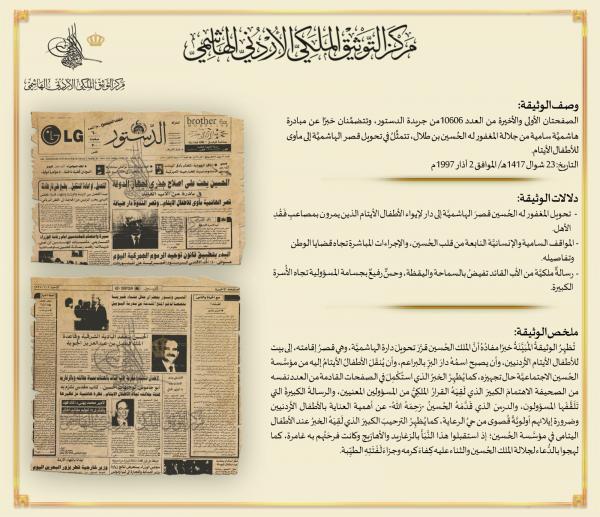 التوثيق الملكي ينشر وثيقة بمناسبة ذكرى وفاة الملك الحسين بن طلال
